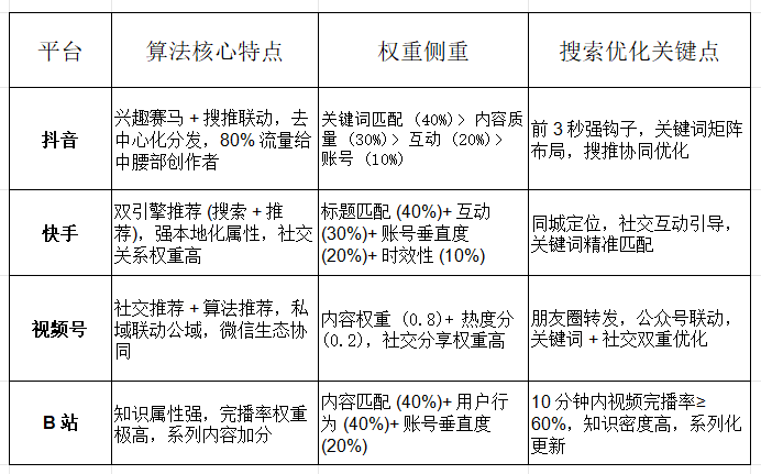 三、主流平台算法差异对比 (2026 年)